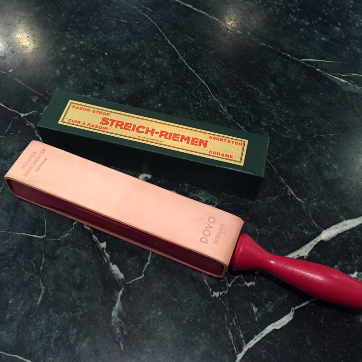 Hand Held Leather Strop used for the maintenance of Razors. Indeed, it allows not only to sharpen the blade but to equalize the razor wire by smoothing the asperities left by successive shaves. Two sides covered with Russian-style skin. A natural skin side to keep the thread healthy, it is advisable to do a couple of passages on this side before each shave to warm the blade slightly.