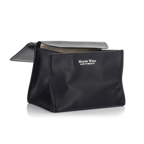 The lea collection is our best seller. Classic black without any adornments, this series is a testimonial to the finest German craftsmanship. This soft lamb nappa pouch is lined with natural rubber of the highest quality. The structure of the leather is very fine and even, the seams are precise. Made in Offenbach.