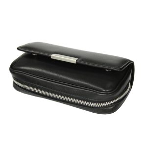 Very sportive series with silver coloured zipper and a brushed logo. Holds two pipes. Material – lamb nappa.
