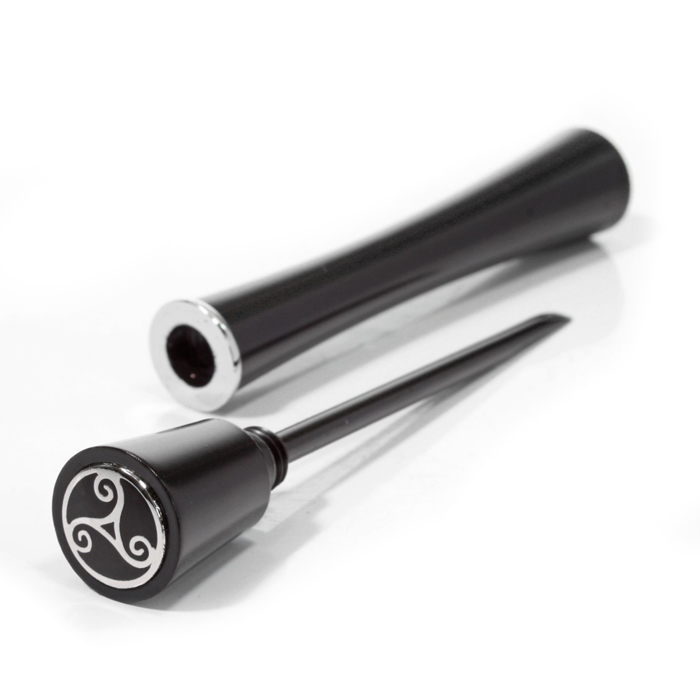 This brass tamper is the newest addition to the Rattray’s Tamper line. It weighs 45 grams and in the top the triskele logo is embedded. Length: 8 cm – Tamper diameter: 1,2 cm – Thorn: 6 cm