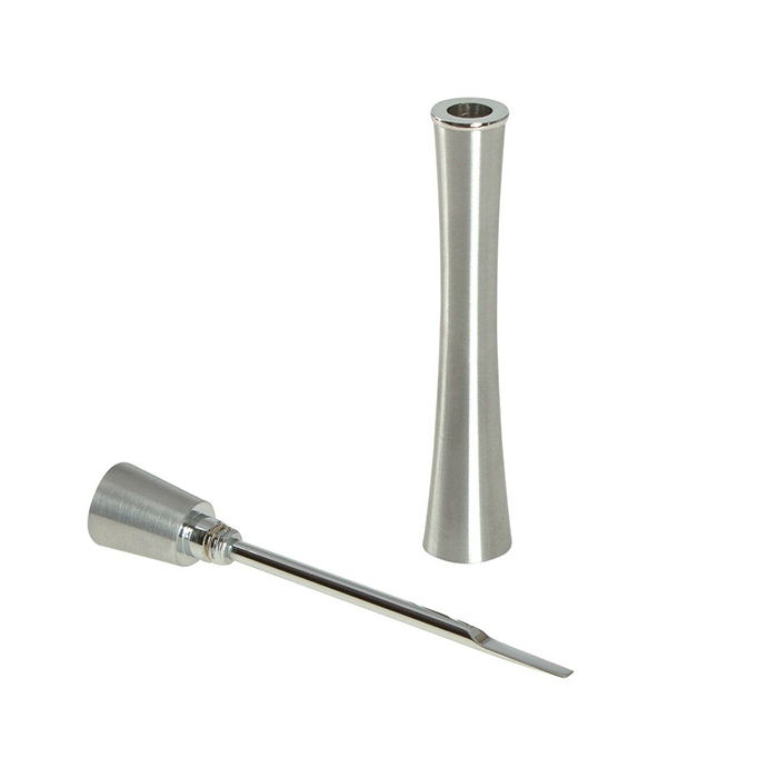 Rattray’s Bone tamper feature a tapered middle that flares out toward the ends. The top, adorned with the Scottish marque’s triple spiral logo — the ancient Celtic triskele symbol — unscrews to access the pick tool that stows inside the fuselage. Combining durability and utility, this metal tamper is the perfect everyday accessory, presented in a crisp, classy style, this particular one wearing a Chrome Satin finish.