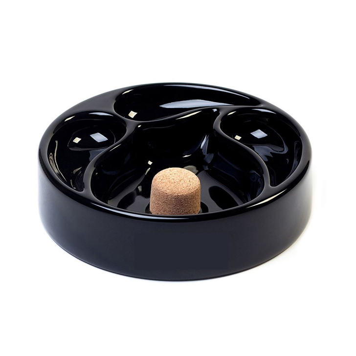 Ceramic ashtray with a cork pipe knocker and compartment for 3 pipes.