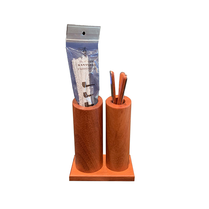 Keep your pipe essentials neatly organized with the Savinelli C435 Natural Kit / Accessories Holder. Crafted in Italy with a natural finish, this elegant kit stores your pipe cleaners, tamper, pick, and bowl-cleaning spoon in one compact, stylish unit.