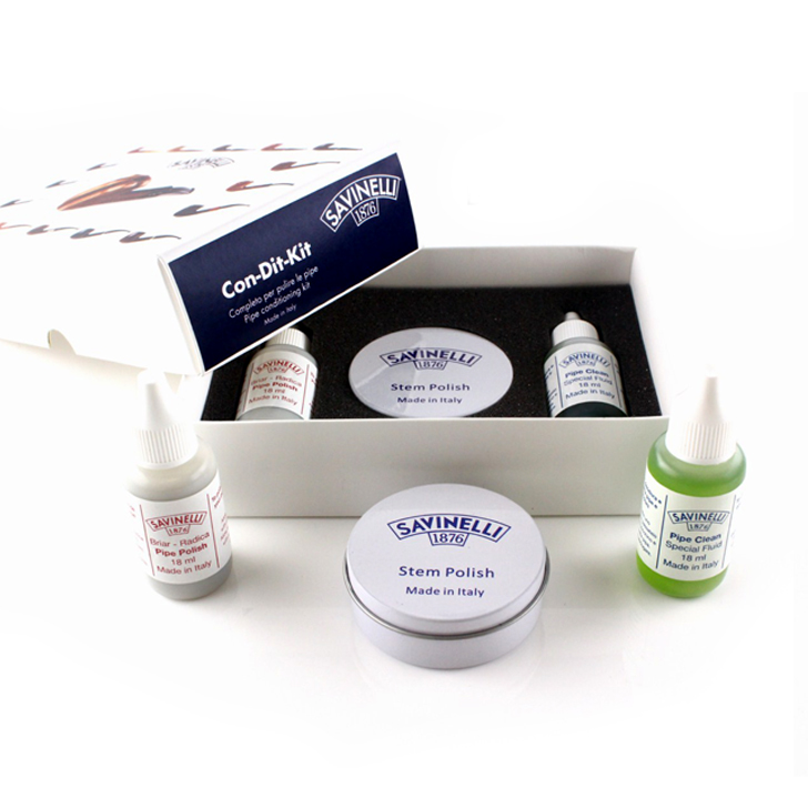 Convenient package including Stem Polish (paste used to clean ebonite tapered stems), Nikosolvol (to clean the inside of the pipe), Pipe Polish (to clean the outside of the pipe). A 3 in 1 which Savinelli offers to help slow smoke lovers