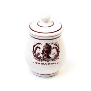 Crackle, old style, ceramic tobacco holder vase with brown drawings. Lid with a rubber seal to safeguard the tobacco aroma