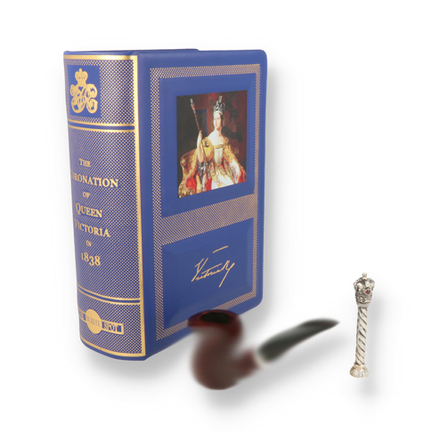 - Packaging – Leather book – Printed image of Queen Victoria on the day of the coronation