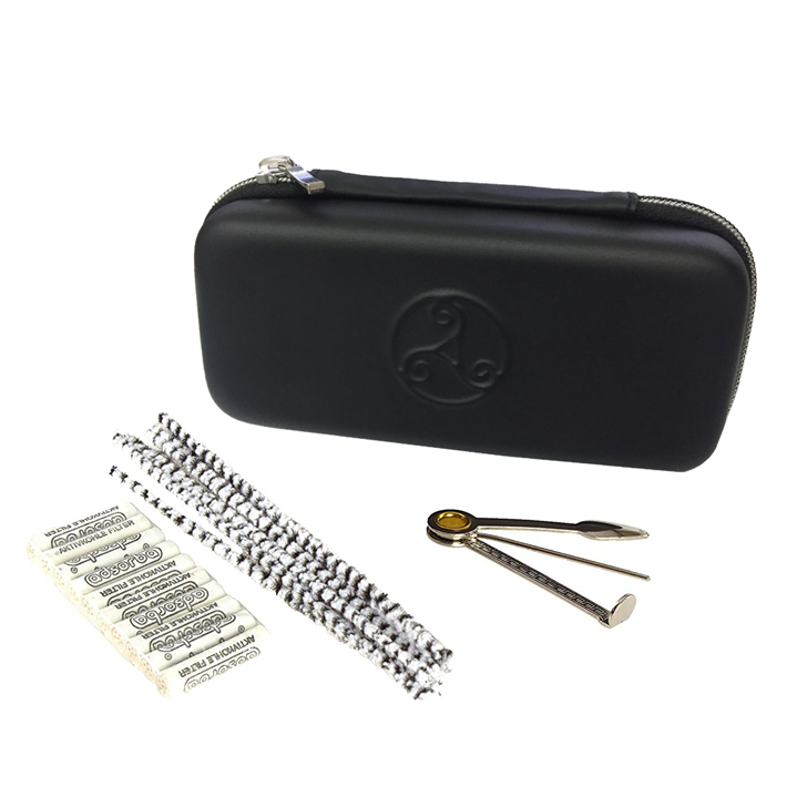 This brilliant set includes a Rattray’s “Joy” 9mm filter pipe, ten pipe cleaners, a pipe companion tool, a pipe stand, ten absorbent 9mm filters, a handy beginners guide to pipe smoking and a sturdy clamshell (Crow) zip up pipe pouch.