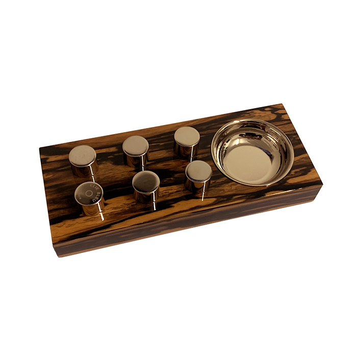 Refined and functional, the Elie Bleu Royal Ebony Egoist Silver Ashtray is designed for the discerning cigar connoisseur. Handcrafted in France from luxurious Royal Ebony wood and accented with silver-plated pedestals, it combines elegance with precision functionality.