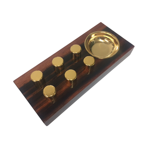 Ashtray for a single cigar resting on 6 studs, i.e. 6 very small contacts. This ashtray allows a good combustion of the cigar without heating it thanks to the air circulation around it and a limited contact.