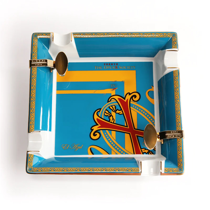 The “El Azul” collection from The Fuente OpusX Society was designed to celebrate the birth of the 20th anniversary of the Fuente Fuente OpusX cigar. Handcrafted by a world leader in artisanal porcelain in Limoges, France also manufactured in limited quantities like its tobacco counterpart. “El Azul” was designed for the strong following and passionate fans of the “OpusX Blue”