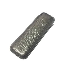 Cow hide leather cigar case can hold upto 2 double coronas. Metallic hue with an alligator motif.