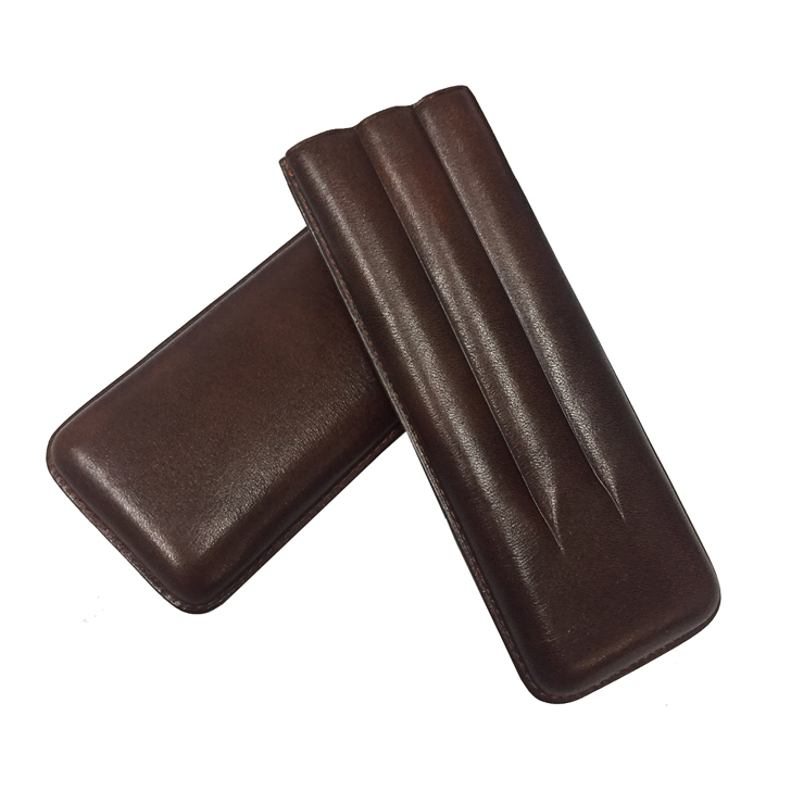 Cigar case bicolor, havana and white leather, the classic colors of H.Upmann. Holds two cigars.