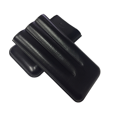 This Jemar high quality Spanish leather case holds upto 3 double corona sized cigars. Only top grade quality leather (free of chemicals) is used to manufacture this light and smooth high quality cigar case.