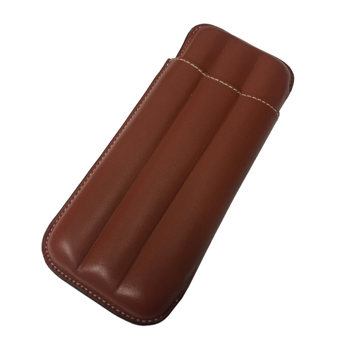 This beautiful accessory is designed to house 3 large diameter cigars, formed of two cases, one fitting into the other. The opulent brown leather is also highlighted by a smart white stitching line. This beautiful case can slip into one of your pockets or in a discreet place at the bottom of your bag. Presented in a beautiful box and signed by the brand. Capacity : 3 cigars, Material : Leather, Color : Brown