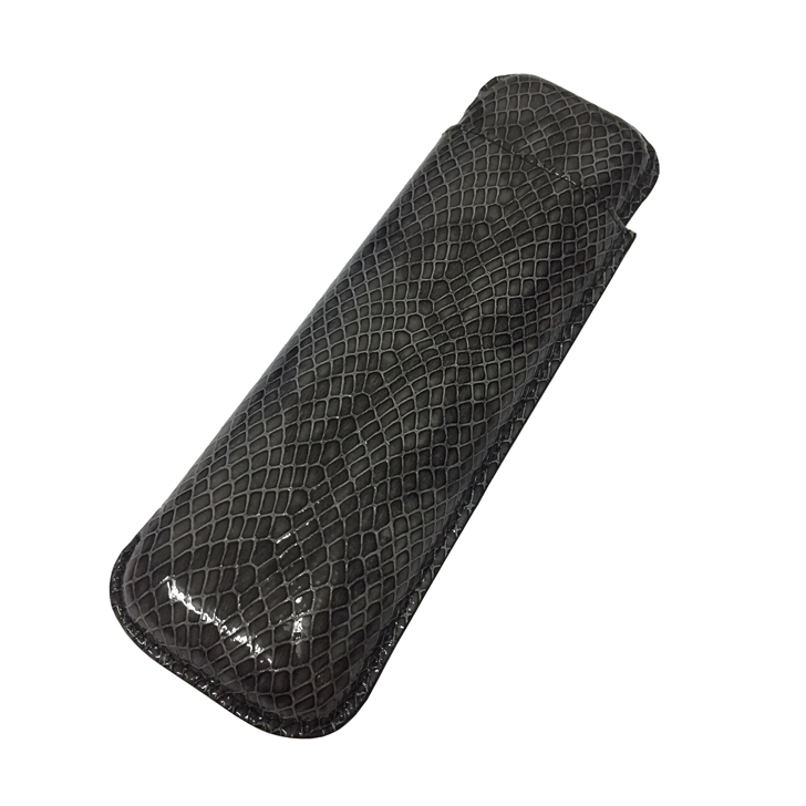This beautiful accessory is designed to house 2 cigars (53 ring gauge x 15cm length), formed of two cases, one fitting into the other. The shiny grey leather is also highlighted by imitating the scales of a reptile. This beautiful case can slip into one of your pockets or in a discreet place at the bottom of your bag. Presented in a beautiful box and signed by the brand. Capacity : 2 cigars, Material : Leather, Color : Anthracite
