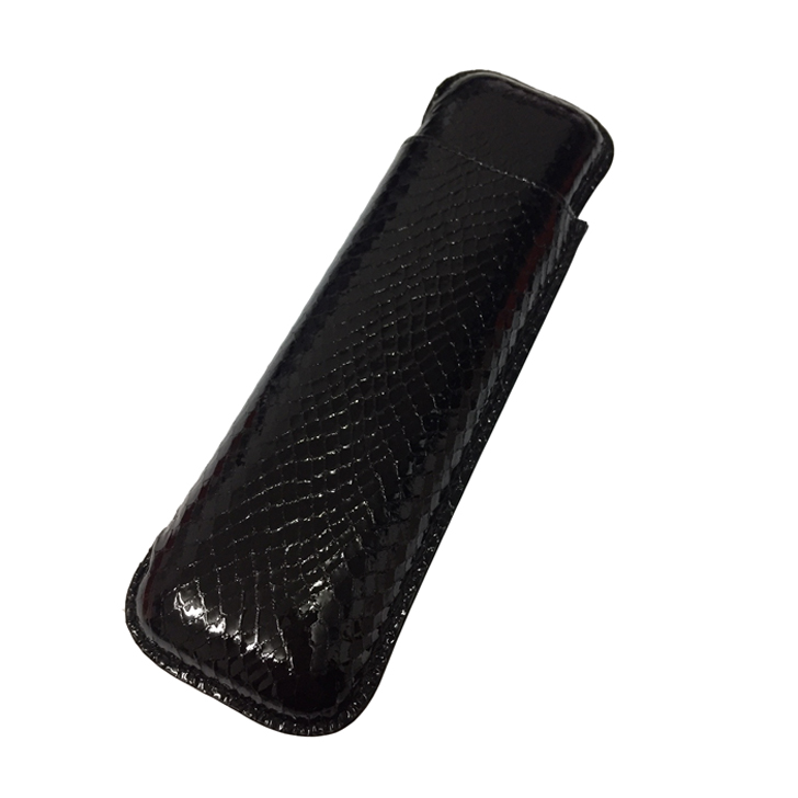 This beautiful accessory is designed to house 2 cigars (53 ring gauge x 15cm length), formed of two cases, one fitting into the other. The high polish leather is also highlighted by imitating the scales of a reptile. This beautiful case can slip into one of your pockets or in a discreet place at the bottom of your bag. Presented in a beautiful box and signed by the brand. Capacity : 2 cigars, Material : Leather, Color : Shiny Black
