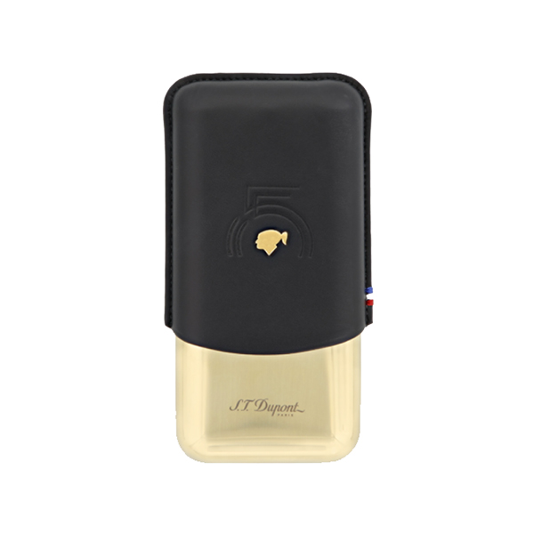S.T. Dupont Cohiba 55th Anniversary triple cigar case. Black leather with gold metal base, contains space for 3 cigars.