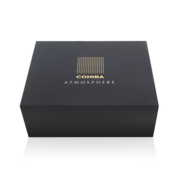 This stylish and black lacquered humidor with the brand’s gold logo is the latest accessory from Cohiba Atmosphere. The humidor contains a humidification system with which you can ideally store your cigars. A hygrometer for reading the humidity is also included.