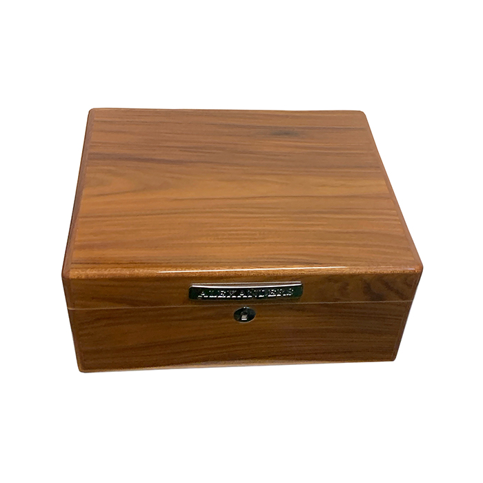 50 count humidor in Rosewood finish, lined with Spanish cedar to keep your cigars flavoursome. Humidifier and hygrometer included.