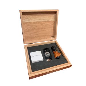 For a customer who is ready to dive into the world of cigars, this set includes a beautiful 12-15 count desktop humidor in Burl with the following features: