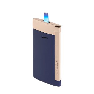 The S.T. Dupont Slim 7 Blue / Rose Gold combines sophistication with precision. Its glossy blue lacquer body is complemented by polished rose gold accents, creating a refined and luxurious appearance perfect for collectors and cigar enthusiasts alike.
