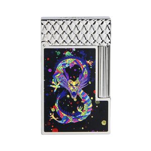 The lighter showcases a vibrant dragon motif, meticulously engraved on the lacquered surface, with golden finishes adding depth and contrast. Inspired by the legendary creature and the Lunar New Year, the design embodies strength, joy, and infinite possibilities. The palladium-plated body provides a sleek, durable foundation, enhancing both style and longevity.