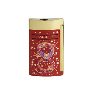 The S.T. Dupont MaxiJet Dragon Burgundy combines bold design with precise functionality. Its deep burgundy lacquer body, enhanced with gold-plated accents, exudes sophistication while providing a powerful, reliable jet flame for cigar enthusiasts.