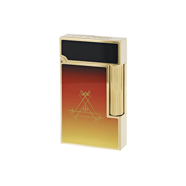 The L2 Dupont is lacquered in shades of orange, with the gold-stamped logo of the prestigious Montecristo cigar brand on the front, and a golden sun and moon design on the back. It has a double flame system, with a soft flame.
