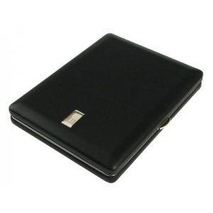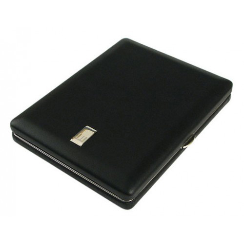 A cigarette case for 10 elongated cigarettes, covered on both sides with high-quality black leather.