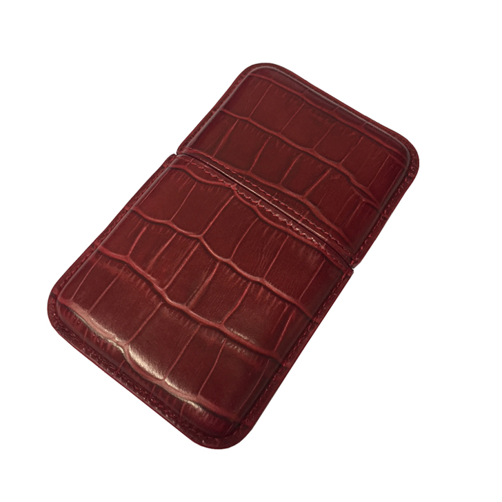 This beautiful accessory is designed to house 7 cigarettes or mini cigars (11cm length x 6.5cm width), formed of two cases, one fitting into the other. The high polish leather is also highlighted by imitating the scales of a reptile. This beautiful case can slip into one of your pockets or in a discreet place at the bottom of your bag. Presented in a beautiful box and signed by the brand. Capacity : 7 cigarillos, Material : Leather, Color : Red
