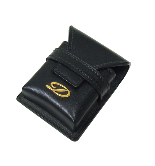 Dupoint lighter case made of black cowhide leather with gold S.T. Dupont logo.