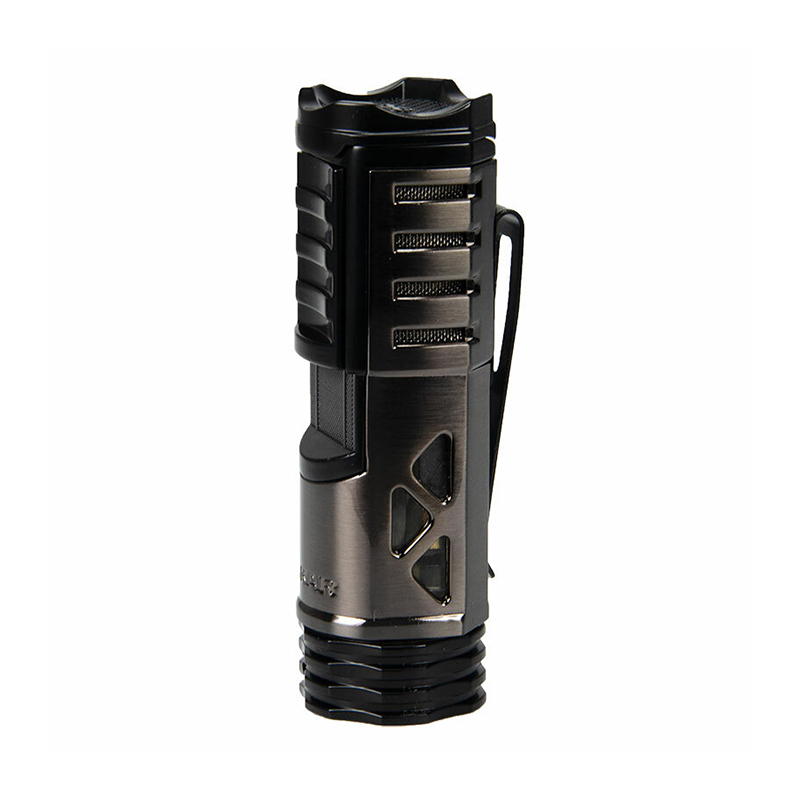 Tactical 1 uses a 10mm single jet, which is 25-50 percent larger than a standard single flame torch. To keep with the tactical look, it also features a removable clip. The crenelated cap is designed to function as a cigar rest while the lighter stands on its base.